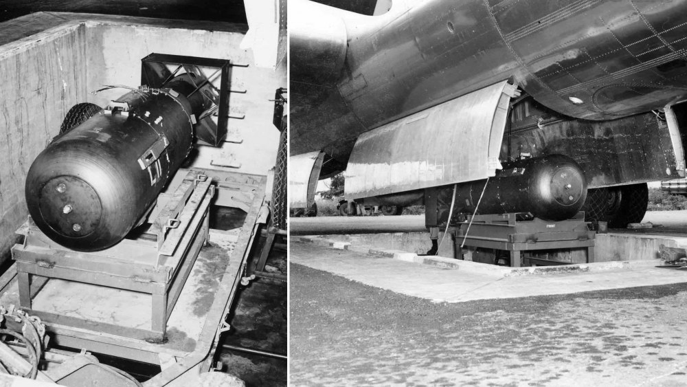 L’avion emporte dans sa soute Fat Man, une bombe A qui diffère totalement de Little Boy. Celle-ci est à implosion, un autre modèle prévu dans le brevet Joliot-Curie, où des explosifs disposés tout autour d’une sphère de plutonium vont exploser simultanément pour la compresser fortement afin qu’elle atteigne la masse critique. C’est une technologie bien plus efficace, mais aussi bien plus complexe (l’explosion simultanée doit être symétriquement parfaite au risque d’échouer, et la bombe est plus grosse).