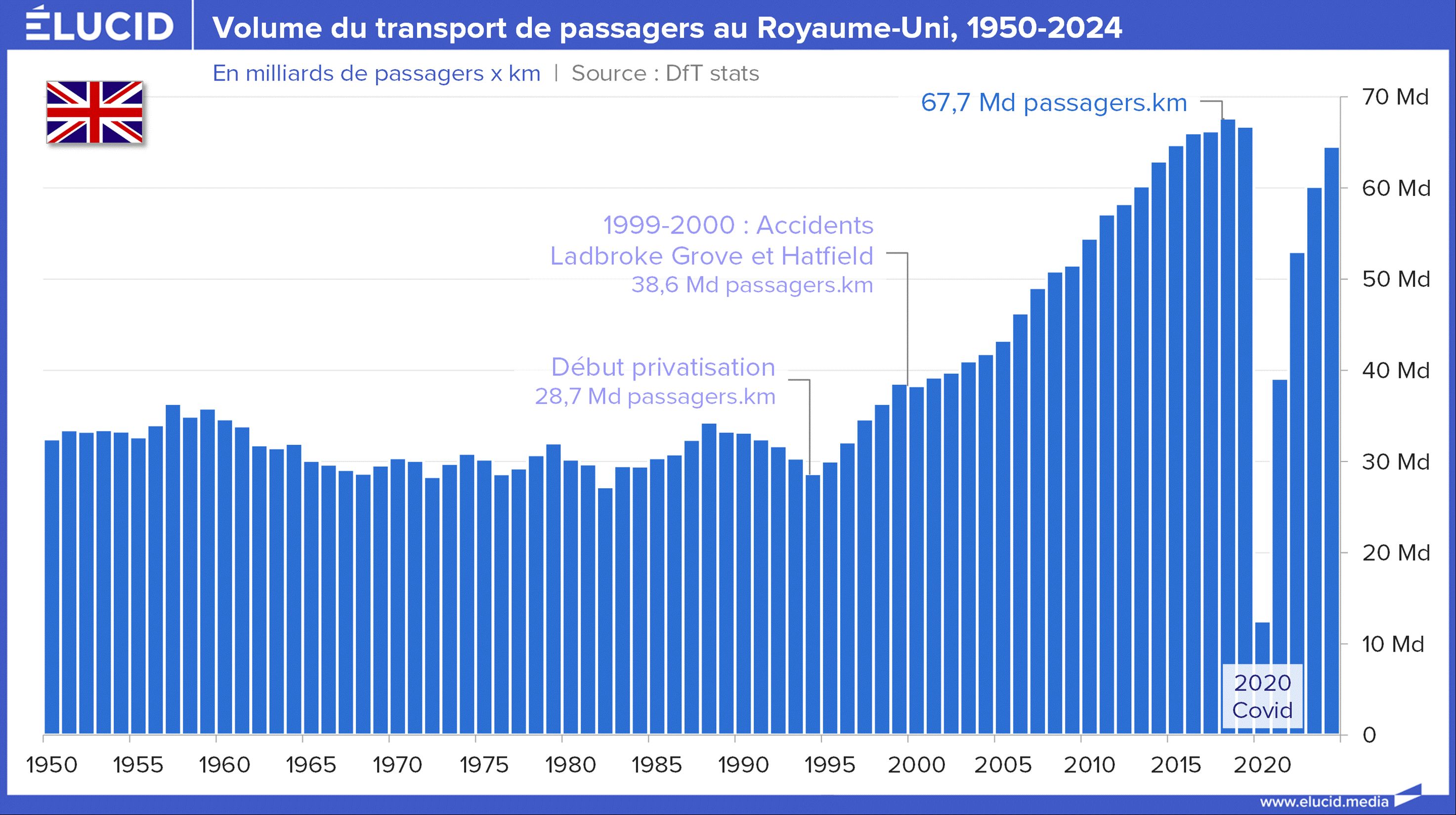 Cette analyse graphique est une republication qui résonne avec l'actualité. Publication originale le 19 août 2025, sous le titre : « La France ouvre le rail à la concurrence pendant que le Royaume-Uni renationalise ».