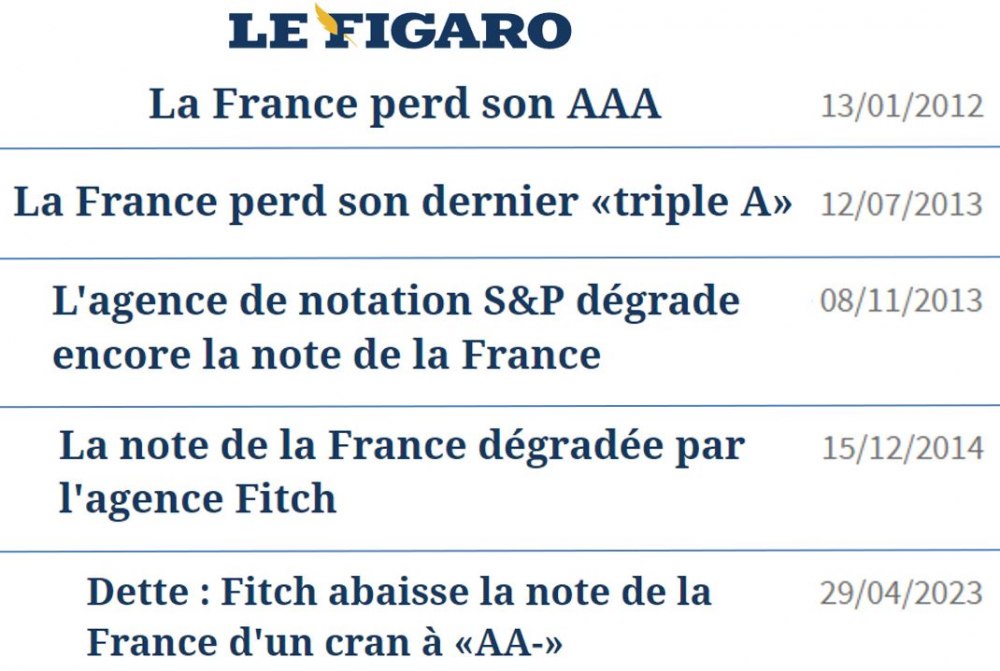 Après un long suspens, S&P n’a finalement pas (encore) dégradé la note de la France. Comme la perspective reste négative, elle le fera probablement dans les prochains mois, comme l’a fait il y a quelques semaines sa concurrente Fitch. En effet, les années passent et régulièrement, les agences de notation dégradent leur appréciation de la solidité de la dette publique française, sanction logique de son expansion continue. Bruno Le Maire s’en plaint, mais qu’espérait-il, lui qui a endetté la France de 1 000 milliards d’euros supplémentaires ? D’autres critiquent ces agences, mais elles ne sont que le thermomètre de la fièvre de l’endettement qui les anime. Le pire est que ces notations d’agences américaines sont en réalité probablement beaucoup trop élevées. Explications.