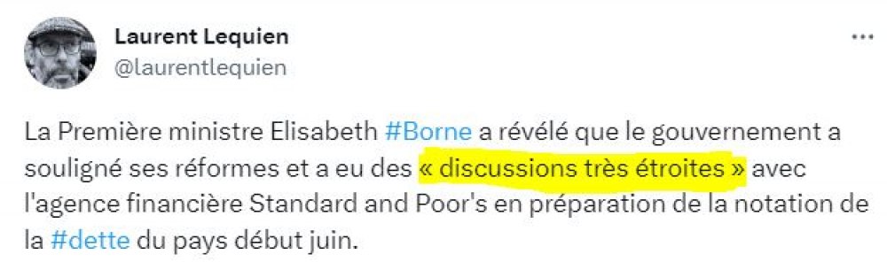 Fin mai, il s’est d’ailleurs démené pour faire les yeux de Chimène à S&P pour éviter une seconde dégradation, en entretenant des « discussions très étroites » avec l'agence – un nouvel opus des fameux #BrunoDemande.