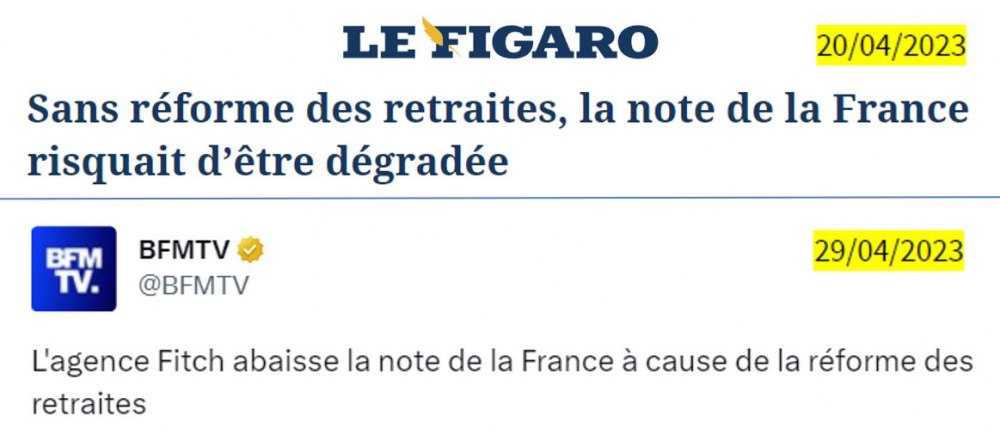Récemment, ces notations ont été instrumentalisées par le gouvernement français pour justifier sa scandaleuse réforme des retraites. Mais cette tactique s’est retournée contre lui. Présentée comme « nécessaire » au maintien de la note française, la réforme des retraites a, au final, servi d’argument aux agences pour dégrader la note française :