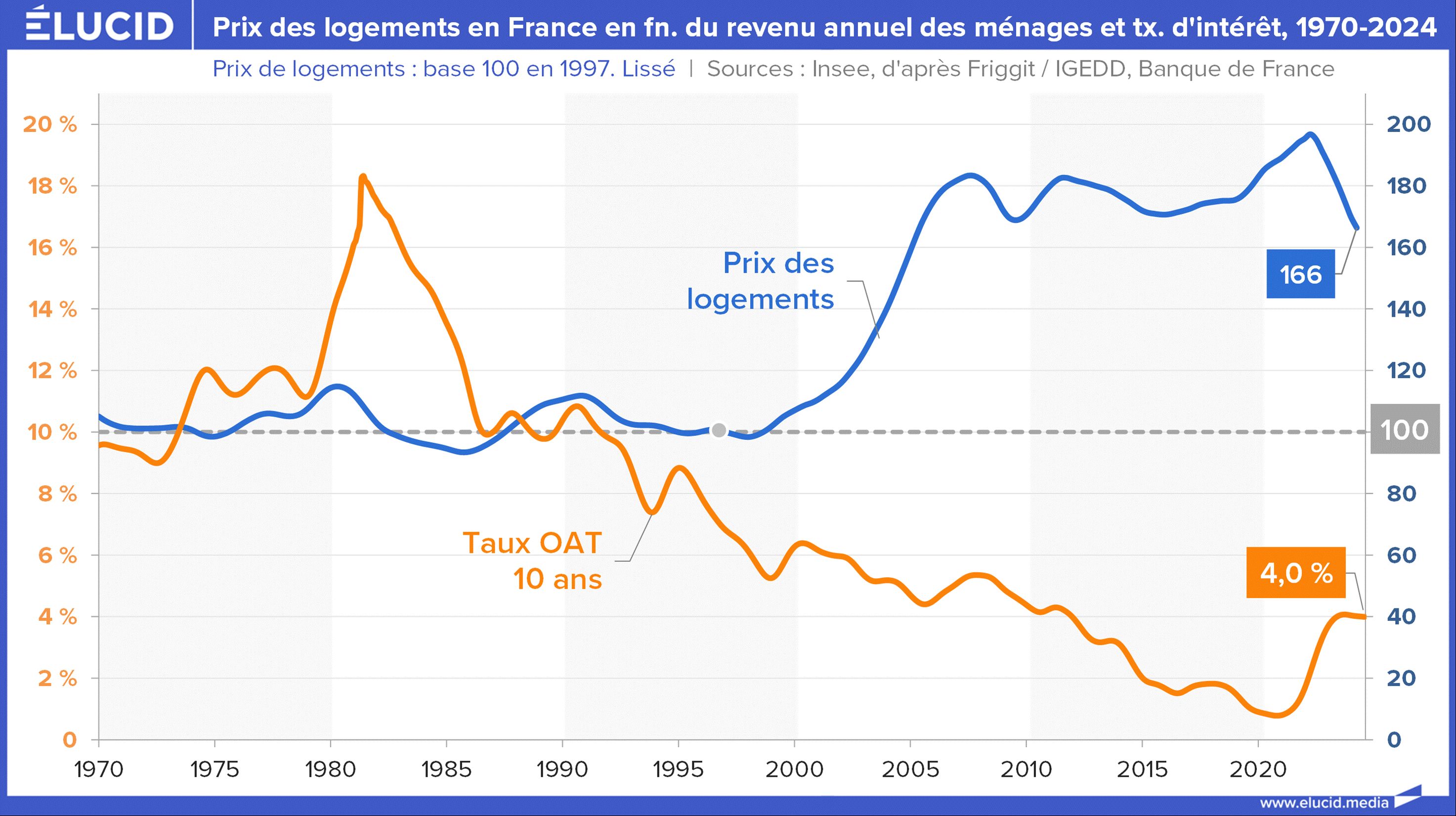Comme nous l’avions annoncé dès 2022, la hausse des taux a fortement impacté le marché de l'immobilier. Depuis lors, les prix ont fortement baissé, souvent de -10 ou -15 % dans certaines communes d’Île-de-France. Cela va bouleverser nos mentalités, car nous avons tous eu l'habitude de voir le coût des logements augmenter un peu plus chaque année, ce qui ne devrait plus être le cas pendant encore un moment. La déflation est une des craintes principales en économie, a fortiori quand elle touche le plus gros achat d’une vie. Les acheteurs diffèrent logiquement leur achat, ce qui fait baisser d'autant plus les prix. Ce secteur va donc probablement rester grippé en 2024, et les constructeurs et agents immobiliers vont continuer de souffrir. L’ineptie d’avoir laissé gonfler une telle bulle n’a pas fini d’impacter les conditions de logement en France, ainsi que les conditions économiques du pays. Explications.