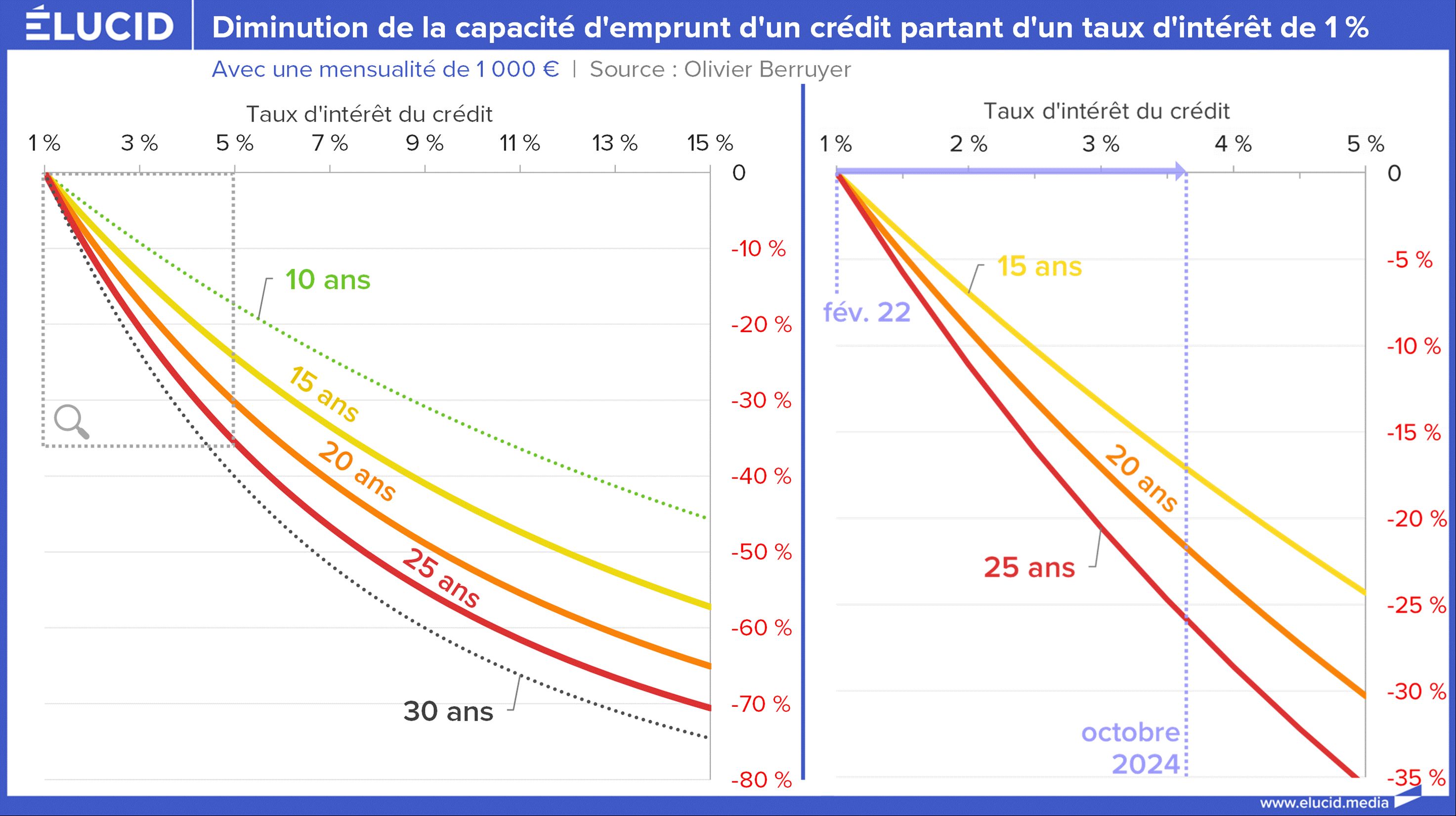 En quelques trimestres, avec 3 points de hausse des taux, c’est 20 à 25 % de la capacité totale d’emprunt des taux de 20 et 25 ans qui a disparu par rapport au début de l’année 2022.