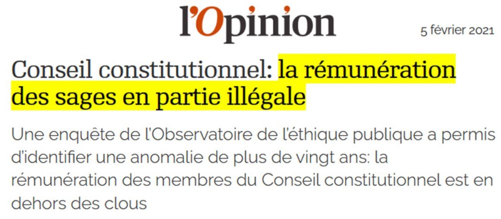 En effet, le gouvernement (« pouvoir règlementaire ») ne peut décider ceci sans qu’une loi votée par le Parlement l’y autorise. Comme l’indique l’Observatoire « une grande opacité entoure ce montant [de rémunération actuelle des membres du Conseil], qui n’est pas même connu des parlementaires. » Le gouvernement a même refusé de la communiquer aux parlementaires en 2019. Un député a finalement réussi à obtenir une feuille de paye anonymisée du Conseil en 2020.