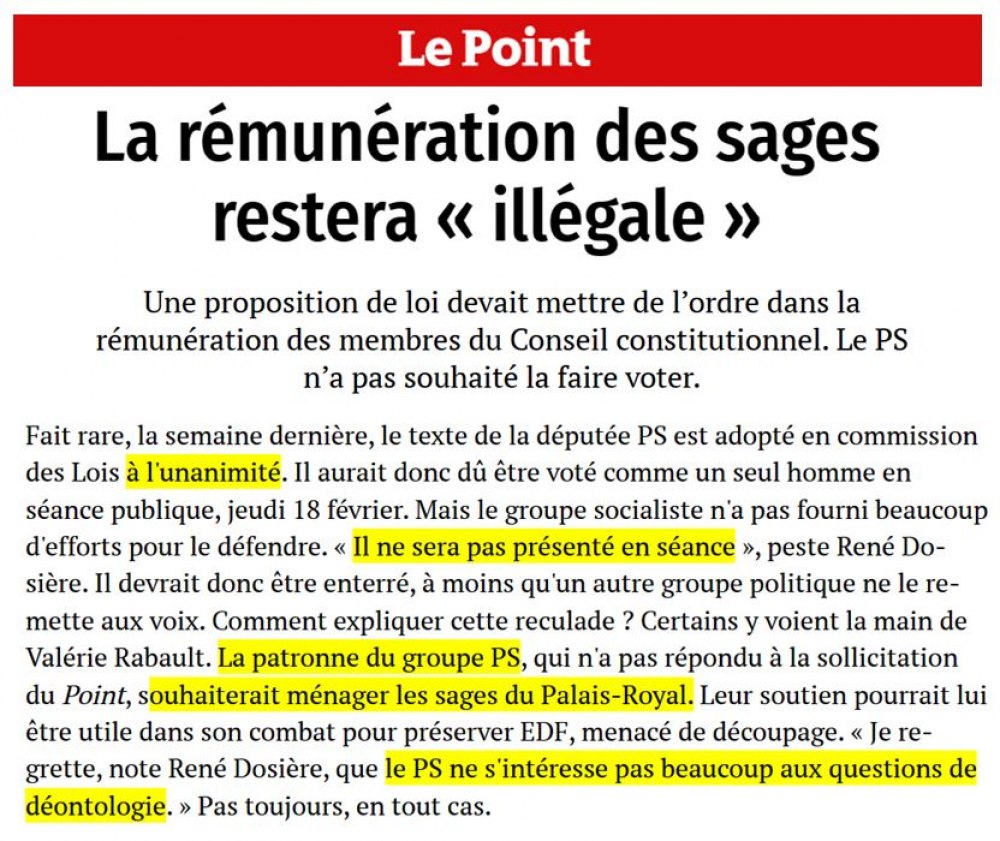 Dernier point, encore plus important. La rémunération illégale des membres du Conseil constitutionnel est intégralement cumulable avec une pension de retraite, ce qui n’est pas possible en général pour les retraités qui veulent exercer une activité, afin de ne pas creuser les déficits des régimes de retraite.