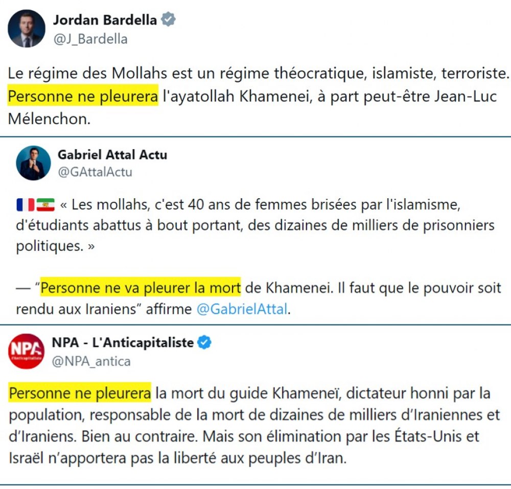 La formule la plus martelée était sans doute la suivante : « personne ne pleurera Khamenei » (notons encore l’emploi du registre émotionnel pour toute analyse).