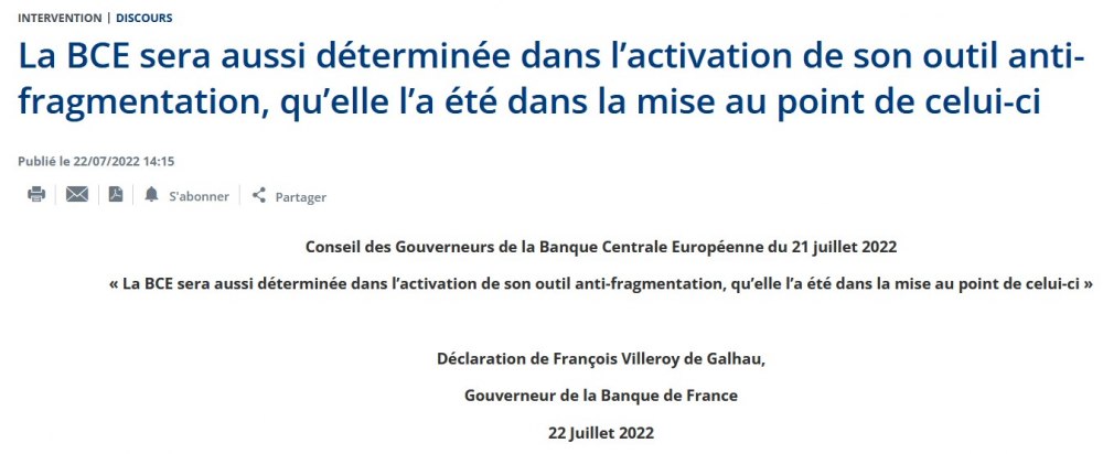 Pour tenter de calmer l'inquiétude logique des prêteurs, la BCE a finalement présenté son « outil anti-fragmentation » dont nous avions parlé durant l'été 2022. Et le résultat a été, comme nous le pressentions, un échec cuisant....