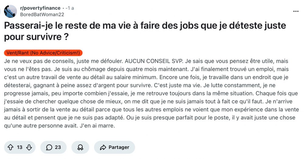 Certes, on pourrait penser que ces emplois sont un sas d’entrée, un tremplin vers des emplois mieux payés, mais malheureusement, cela ne semble pas être le cas. En effet, compte tenu du profil des personnes surreprésentées dans ces emplois (les femmes, des personnes racisées et les personnes ayant peu ou pas de diplômes), ces derniers ne sont statistiquement pas susceptibles d’évoluer vers de meilleurs emplois.