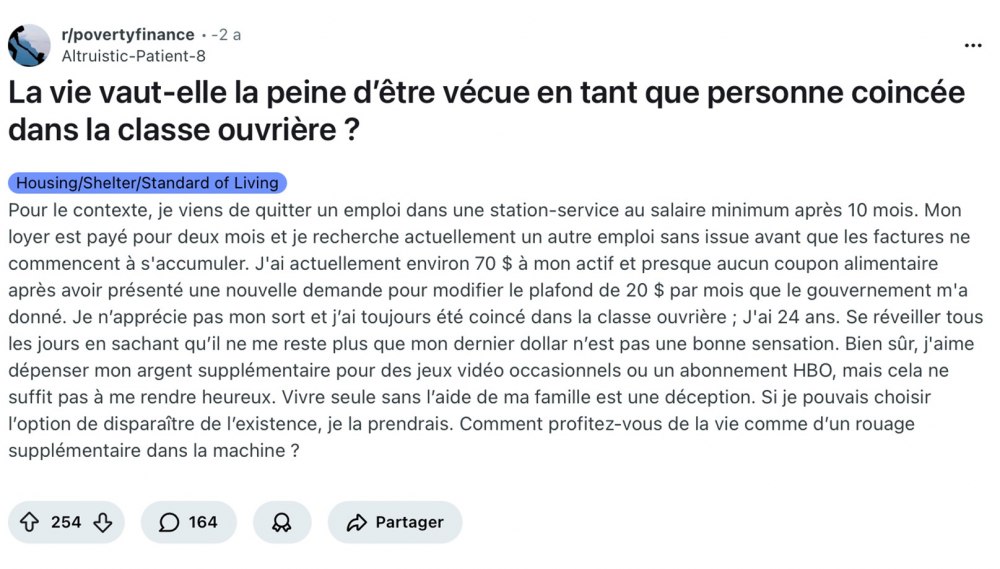 Cela veut dire que pour une majorité d’Américains, le travail ne paie pas. D’ailleurs, en 2025, ils n’étaient plus que 25 % à croire que la promesse du « rêve américain » (travailler dur permettrait de s’en sortir et de s’émanciper) était encore une réalité…